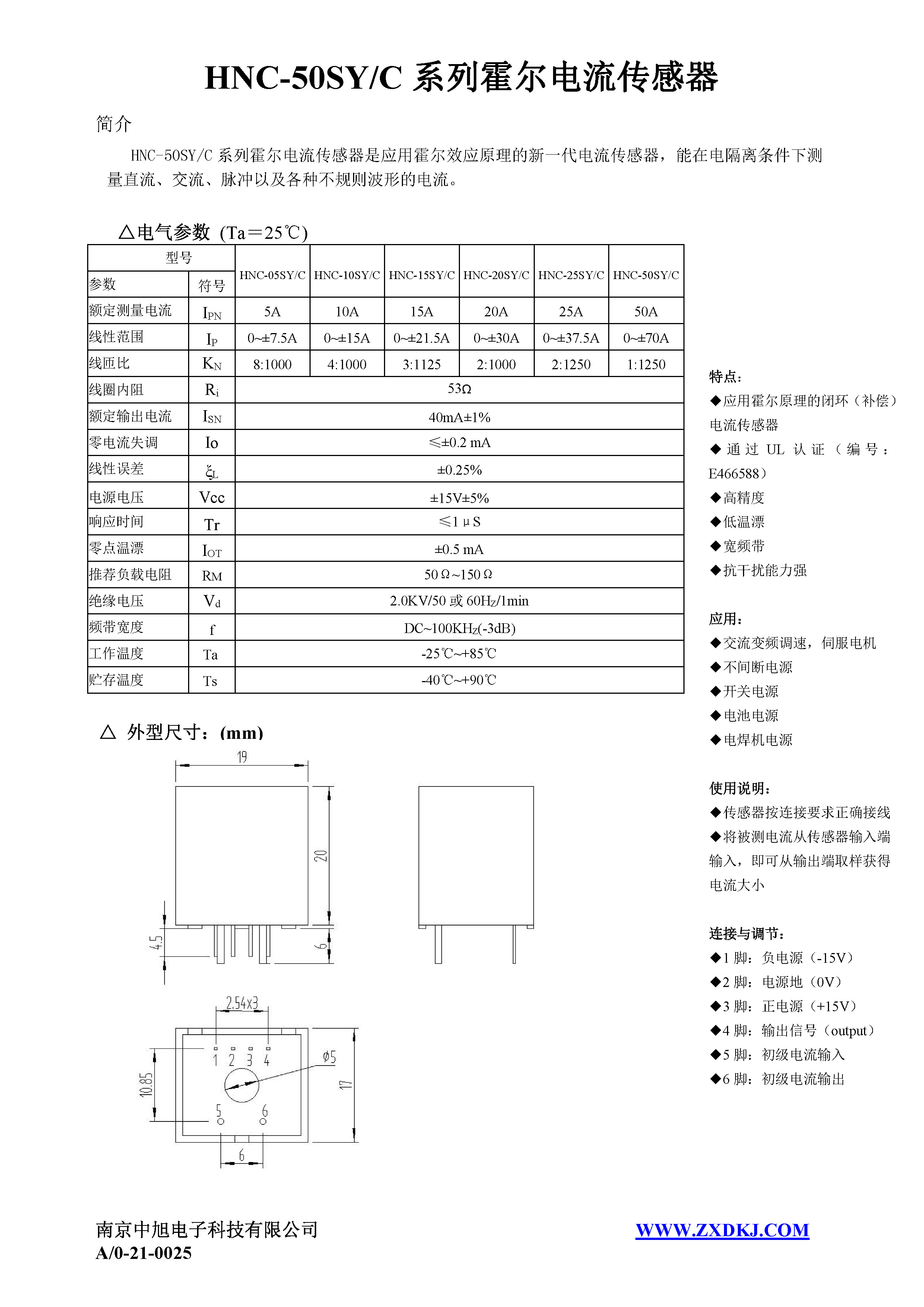 HNC-25SY/C系列霍爾電流傳感器是應(yīng)用霍爾效應(yīng)原理的新一代電流傳感器,能在電隔離條件下測(cè)量直流、交流、脈沖以及各種不規(guī)則波形的電流。